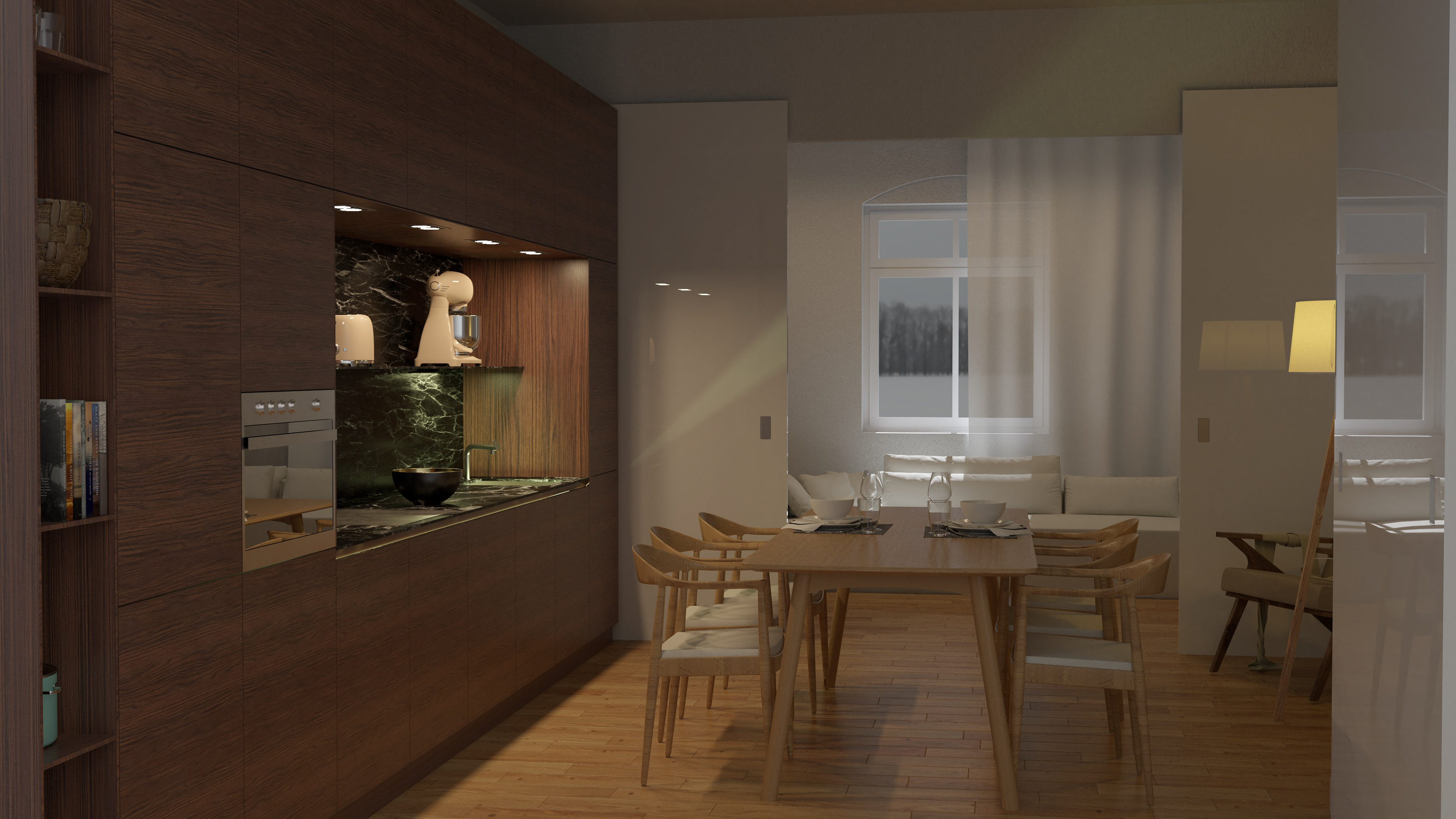 This is a modern apartment renovation in Berlin Friedrichshain, tailored for a young family, blending functionality with contemporary design.